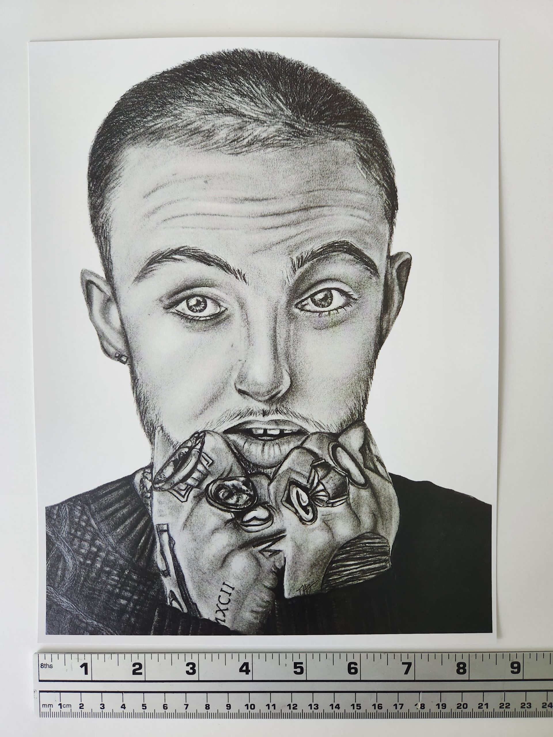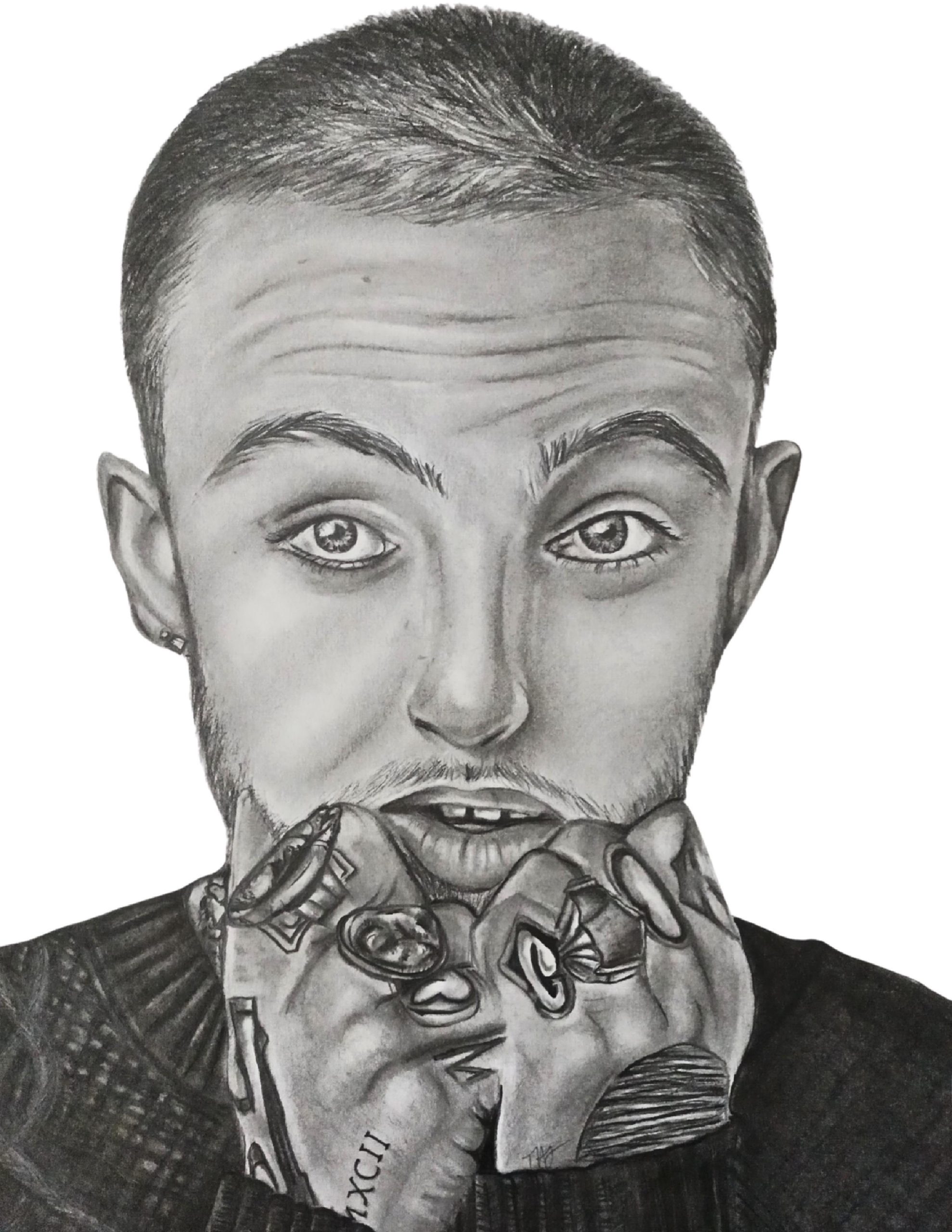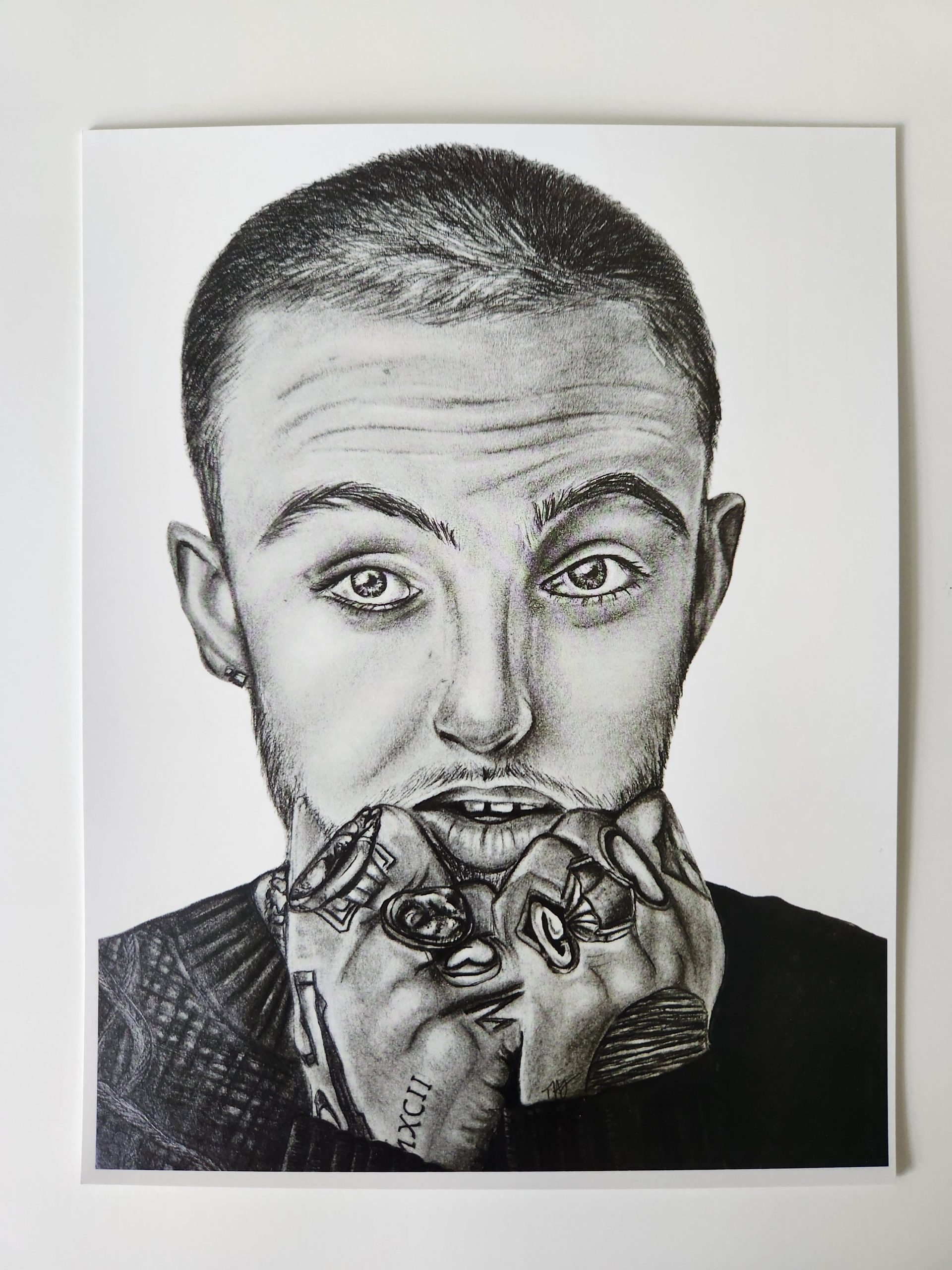 This graphite portrait drawing of Mac Miller captures the beautiful essence of this artist with smooth shading, precise details, and realism style.